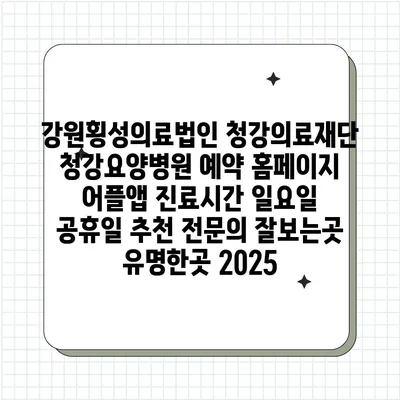강원횡성의료법인 청강의료재단 청강요양병원 예약 홈페이지 어플앱 진료시간 일요일 공휴일 추천 전연락 잘보는곳 유명한곳 2025 에 대해 자주 묻는 질문 TOP 5