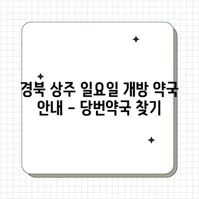 💡 경북 상주 일요일 운영 약국을 쉽게 찾아보세요! 💡