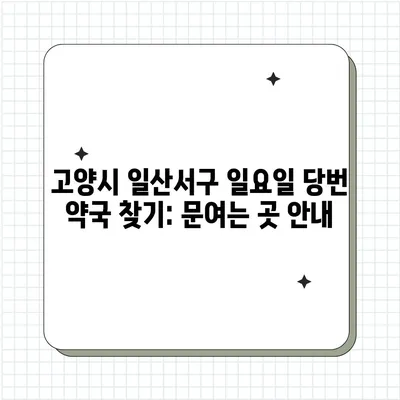 고양시 일산서구에서 일요일 문여는 약국 목록과 영업시간을 확인하고 당번약국을 쉽게 찾아보세요.