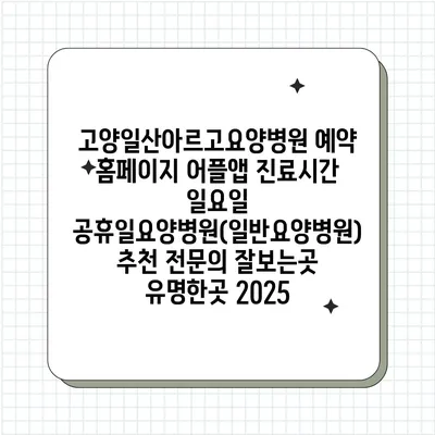 ✅ 고양일산아르고요양병원의 진료시간과 예약 방법을 알아보세요.