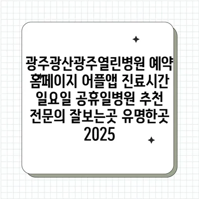 광주광산광주열린병원 예약 홈페이지 어플앱 진료시간 일요일 공휴일병원 추천 전연락 잘보는곳 유명한곳 2025 에 대해 자주 묻는 질문 TOP 5
