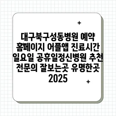 대구북구성동병원 예약 홈페이지 어플앱 진료시간 일요일 공휴일정신병원 추천 전연락 잘보는곳 유명한곳 2025 에 대해 자주 묻는 질문 TOP 5