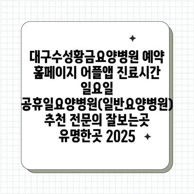 대구수성황금요양병원 예약 홈페이지 어플앱 진료시간 일요일 공휴일요양병원(일반요양병원) 추천 전연락 잘보는곳 유명한곳 2025 에 대해 자주 묻는 질문 TOP 5