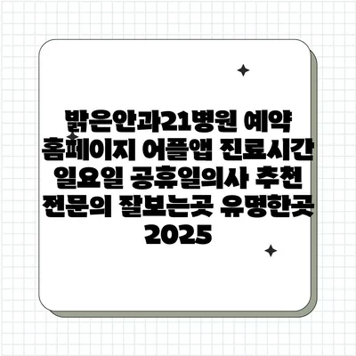 밝은안과21병원 예약 홈페이지 어플앱 진료시간 일요일 공휴일의사 추천 전연락 잘보는곳 유명한곳 2025 에 대해 자주 묻는 질문 TOP 5