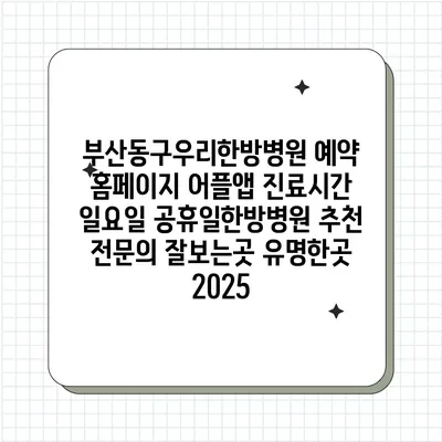 ✅ 부산동구우리한방병원의 진료시간과 예약 방법을 알아보세요.