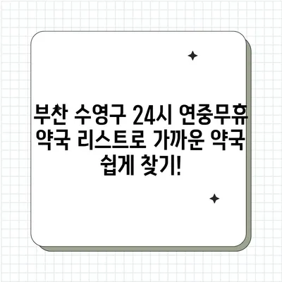 💡 부산 수영구에서 가장 가까운 24시 약국을 지금 바로 찾아보세요! 💡