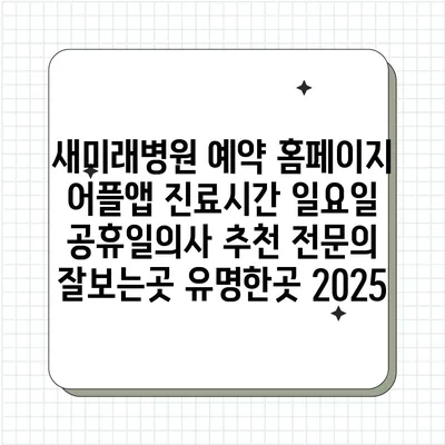 새미래병원은 최신 의료 시스템과 전문 의료진을 갖춘 곳으로, 주말 및 공휴일에도 진료를 알려알려드리겠습니다. 바쁜 일상 속에서도 손쉽게 예약할 수 있는 방법에 대해 소개하겠습니다.