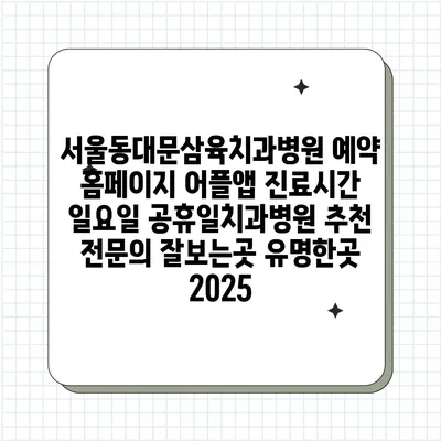 ✅ 서울동대문삼육치과병원의 진료시간과 예약 방법을 지금 알아보세요.