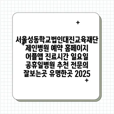 서울성동학교법인대진교육재단 제인병원 예약 홈페이지 어플앱 진료시간 일요일 공휴일병원 추천 전연락 잘보는곳 유명한곳 2025 에 대해 자주 묻는 질문 TOP 5