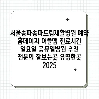 ✅ 서울송파드림재활병원의 진료시간과 예약 방법을 알아보세요.