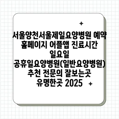 ✅ 서울양천서울제일요양병원의 진료시간과 예약 방식에 대해 알아보세요.