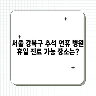 💡 서울 강북구에서 추석 연휴 동안 진료 가능한 병원을 손쉽게 찾으세요. 💡