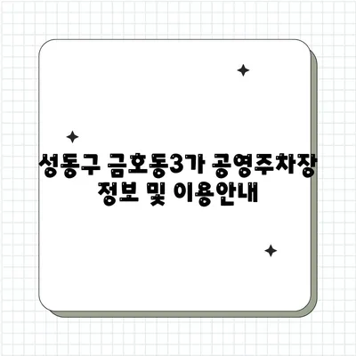 💡 성동구 금호동3가 주차장 이용 시 꼭 알아야 할 팁을 확인해 보세요. 💡