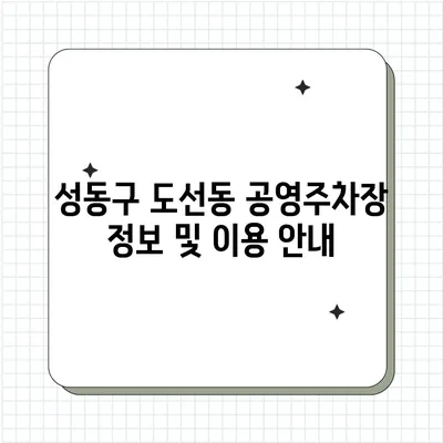 💡 성동구 도선동 공영주차장의 이용 방법과 혜택을 지금 알아보세요. 💡