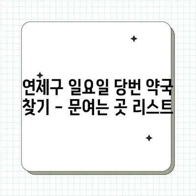 💡 연제구의 일요일 당번 약국 리스트를 확인해보세요! 💡