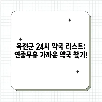 충청북도 옥천군의 연중무휴 24시 약국 리스트와 가까운 약국을 쉽게 찾는 방법을 소개합니다.