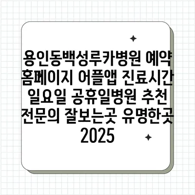 용인동백성루카병원 예약 홈페이지 어플앱 진료시간 일요일 공휴일병원 추천 전연락 잘보는곳 유명한곳 2025 에 대해 자주 묻는 질문 TOP 5