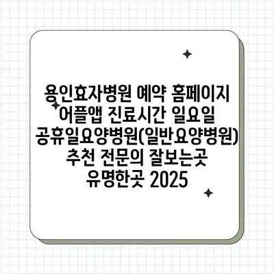용인효자병원 예약 홈페이지 어플앱 진료시간 일요일 공휴일요양병원(일반요양병원) 추천 전연락 잘보는곳 유명한곳 2025 에 대해 자주 묻는 질문 TOP 5