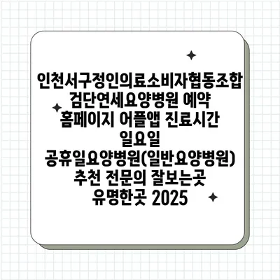 인천서구정인의료소비자협동조합 검단연세요양병원 예약 홈페이지 어플앱 진료시간 일요일 공휴일요양병원(일반요양병원) 추천 전연락 잘보는곳 유명한곳 2025 에 대해 자주 묻는 질문 TOP 5