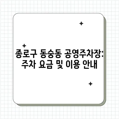 💡 동숭동 공영주차장의 요금과 이용 방법을 자세히 알아보세요. 💡