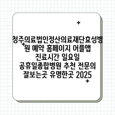 ✅ 청주의료법인 효성병원의 예약 및 진료 시간 정보를 지금 바로 확인하세요!