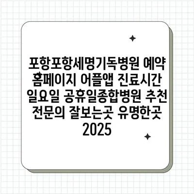 포항포항세명기독병원 예약 홈페이지 어플앱 진료시간 일요일 공휴일종합병원 추천 전연락 잘보는곳 유명한곳 2025 에 대해 자주 묻는 질문 TOP 5