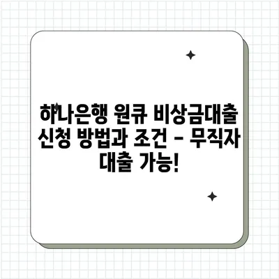 💡 하나은행 원큐 비상금 대출의 조건과 신청 방법을 지금 확인해 보세요! 💡