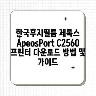 한국후지필름제록스 ApeosPort C2560 프린터 다운로드 하는 방법을 알아보세요. 드라이버를 쉽게 설치하고 효율적으로 프린터를 활용하는 팁을 제공합니다.