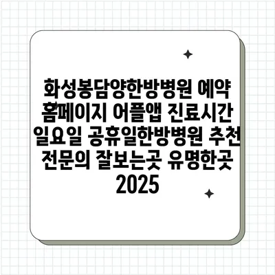 ✅ 화성봉담양 한방병원의 진료시간과 예약 방법을 알아보세요.