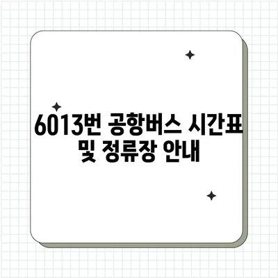 여행을 떠나기 전에 6013번 공항버스의 시간표와 정류장을 사전에 확인하여 보다 원활한 교통편을 이용하시길 바랍니다. 즐겁고 안전한 여행 되시길 바랍니다!