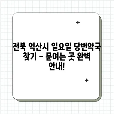 전북 익산시 일요일 약국 문여는 곳 당번약국 찾기 2024 전북 익산시에서 일요일에 문 여는 약국을 찾는 것은 많은 사람들에게 중요합니다. …
