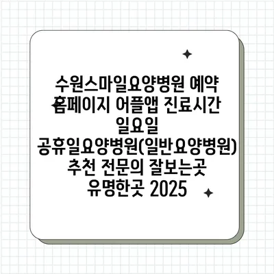 수원스마일요양병원은 편리한 예약 홈페이지와 어플 앱을 통해 이용자들에게 최상의 서비스를 알려알려드리겠습니다. 이 병원은 진료시간이 유연하여 바쁜 현대인들도 쉽게 방문할 수 …