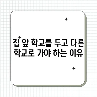 집 앞 학교를 두고 다른 학교로 가야 하는 이유는 여러 가지가 있습니다. 첫째, 학교의 교육 프로그램이 다를 수 있습니다. 특정 …