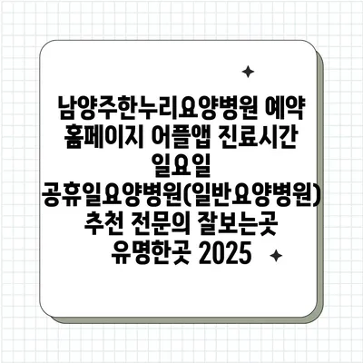 남양주한누리요양병원은 2025년 현재 가장 신뢰할 수 있는 요양병원 중 하나로, 환자들의 건강과 편안한 치료 환경을 중시합니다. 이 병원은 예약 홈페이지와 …