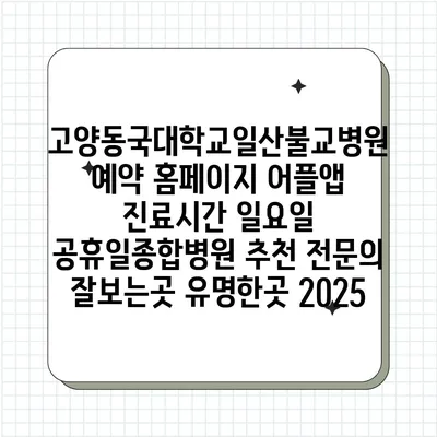 고양동국대학교일산불교병원은 예약 홈페이지와 어플앱을 통해 편리하게 진료를 신청할 수 있는 종합병원입니다. 병원의 진료시간은 평일에는 오전 9시부터 오후 6시까지 운영되며, 일요일 …