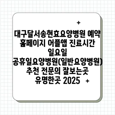 대구달서송현효요양병원은 체계적이고 전문적인 진료를 제공하는 일반요양병원입니다. 2025년에 들어서면서 더욱 증가하는 노인 인구에 맞춰, 이 병원은 최상의 편안함과 전문성을 갖춘 의료 …