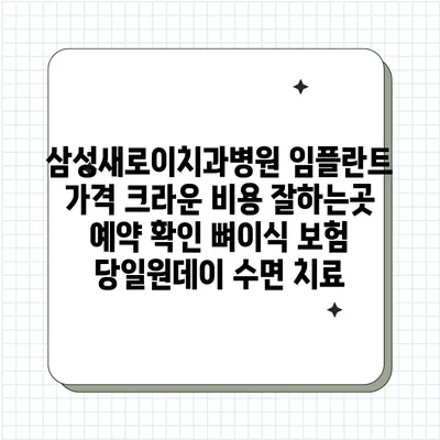삼성새로이치과병원에서는 임플란트 시술을 위한 가격 내용을 제공하고 있습니다. 최근 많은 분들이 임플란트에 관심을 가지고 계시며, 비용에 대해 궁금증이 많습니다. 임플란트를 …