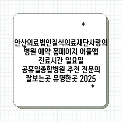 안산의료법인칠석의료재단사랑의병원 예약 홈페이지 어플앱 진료시간 일요일 공휴일종합병원 추천 전문의 잘보는곳 유명한곳 2025