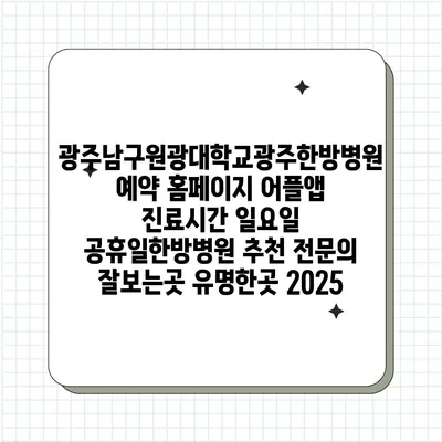 광주남구원광대학교광주한방병원은 한방 치료 분야에서 많은 사랑을 받고 있는 곳입니다. 2025년에는 더욱 발전된 서비스를 제공할 예정이며, 예약 홈페이지와 어플리케이션을 통해 쉽고 …
